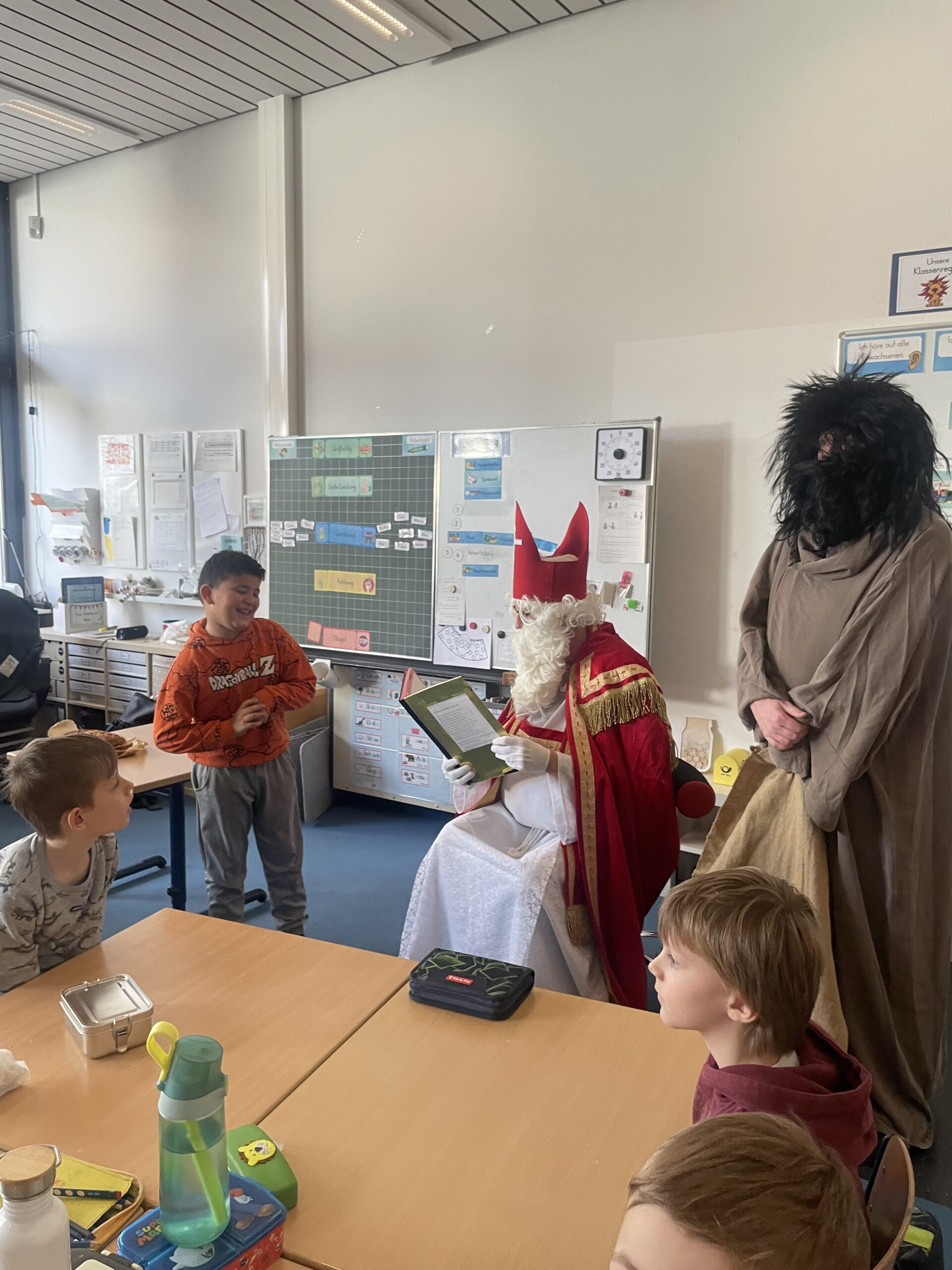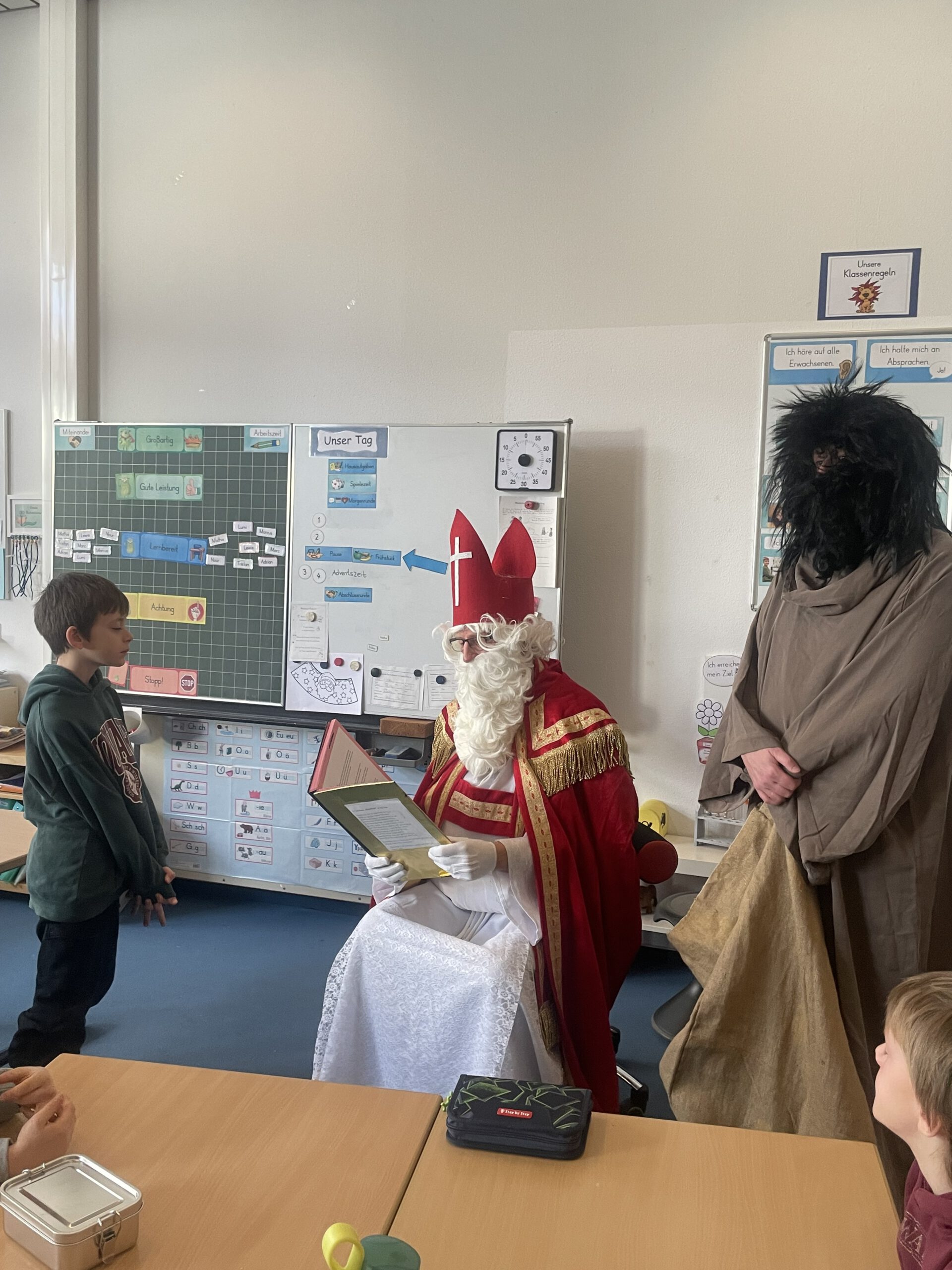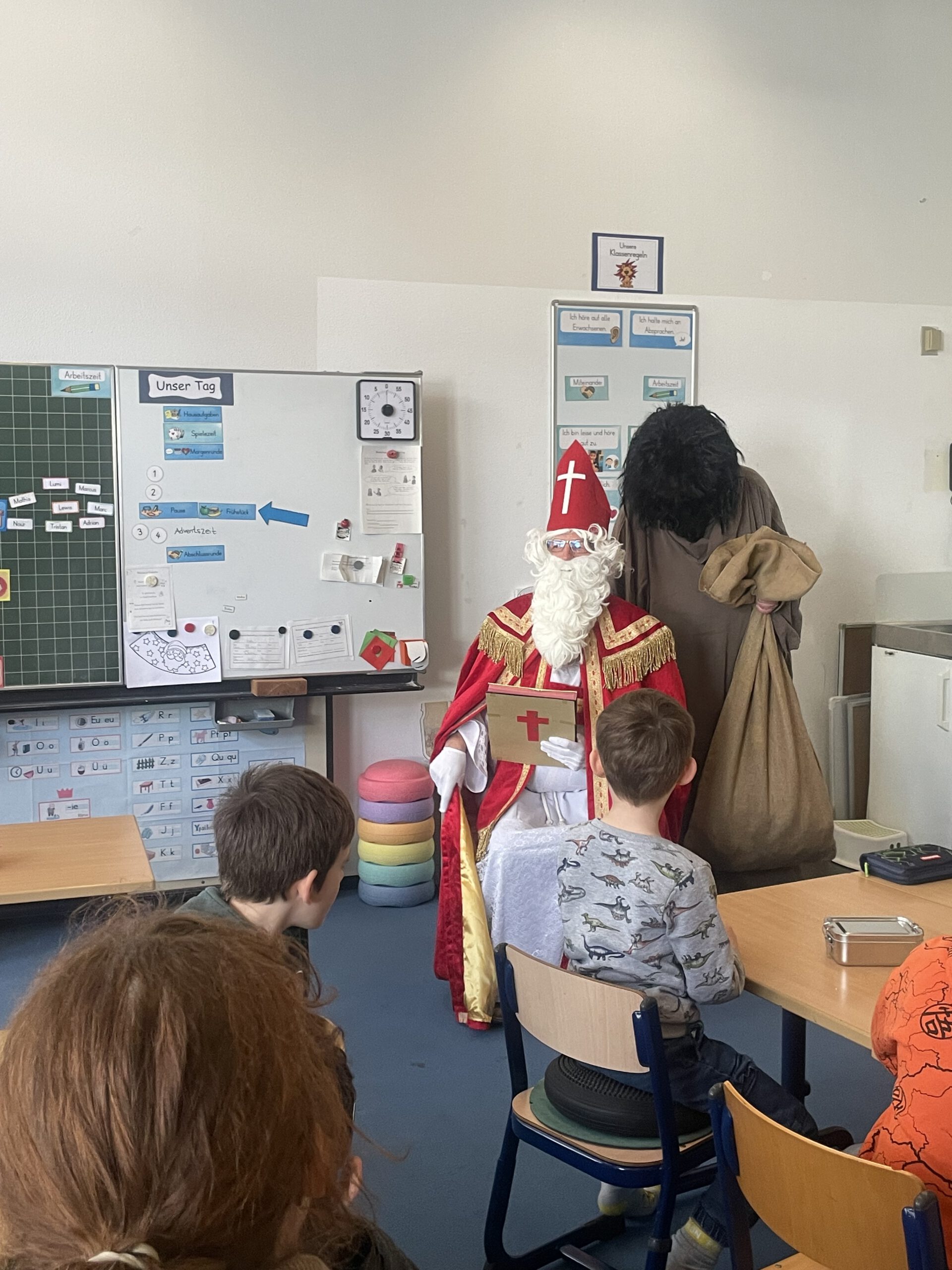 Alle Jahre wieder sorgt der Nikolaus für leuchtende Augen – und natürlich hat er auch dieses Mal den Weg in die Waldschule gefunden! Aus seinem goldenen Buch las er wertschätzende Worte über alle Schülerinnen und Schüler vor. Als kleine Überraschung hatte er viele kleine köstliche Leckereien im Gepäck, über die sich alle sehr gefreut haben.